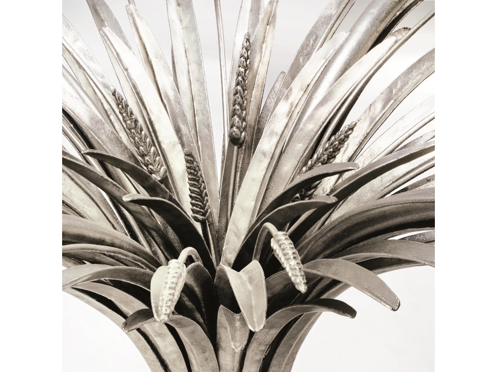 Specifications: This sculptural dining table presents an elegant, organic design with plated leaves in a silver leaf finish.