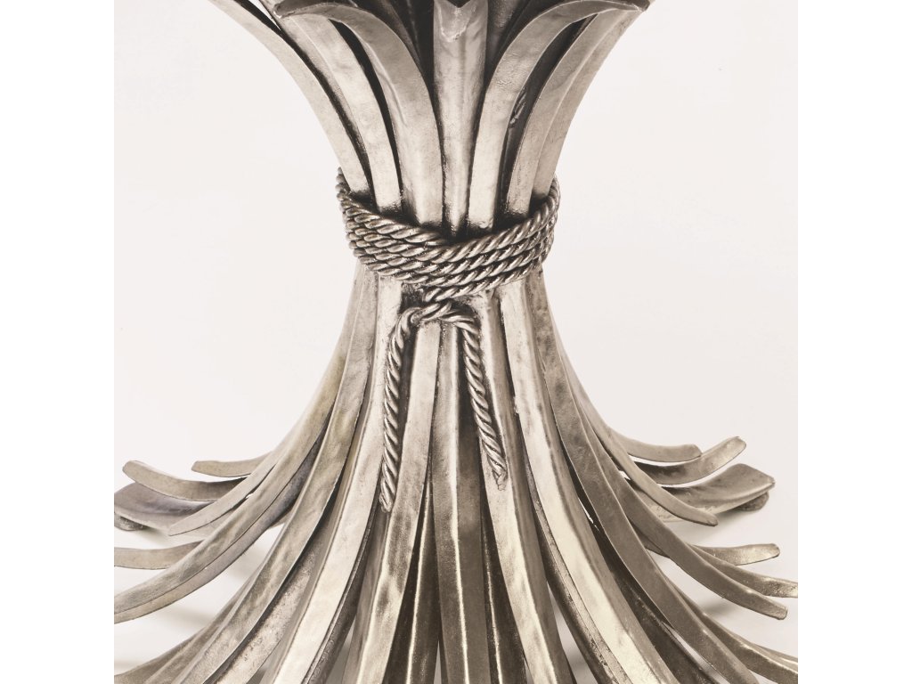 Product Description: With its organic wheat motif design, the Somerset table brings an artistic and natural feel to a dining space. The cast aluminum base shimmers with plated leaves in a silver leaf finish, exhibiting meticulous craftsmanship. For a smooth finish, the clear glass top features an eased, polished edge.
